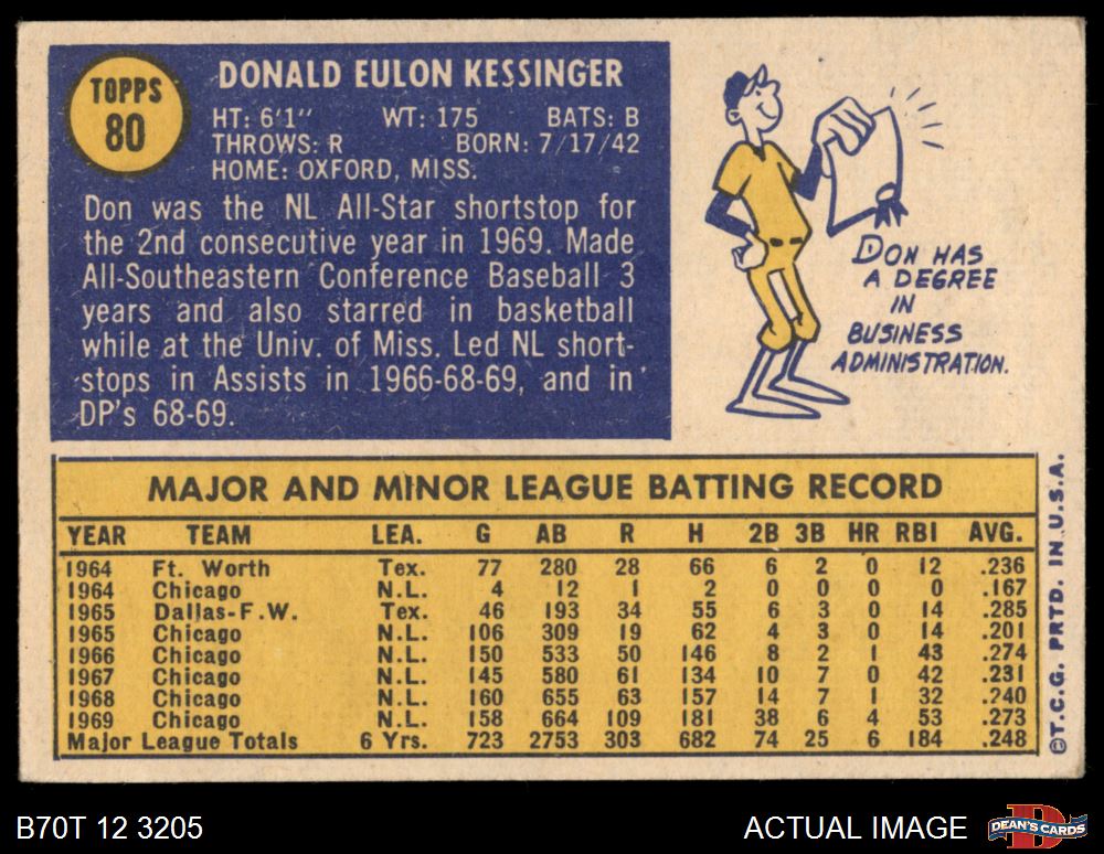 1970 Topps #80 Don Kessinger 4 - VG/EX