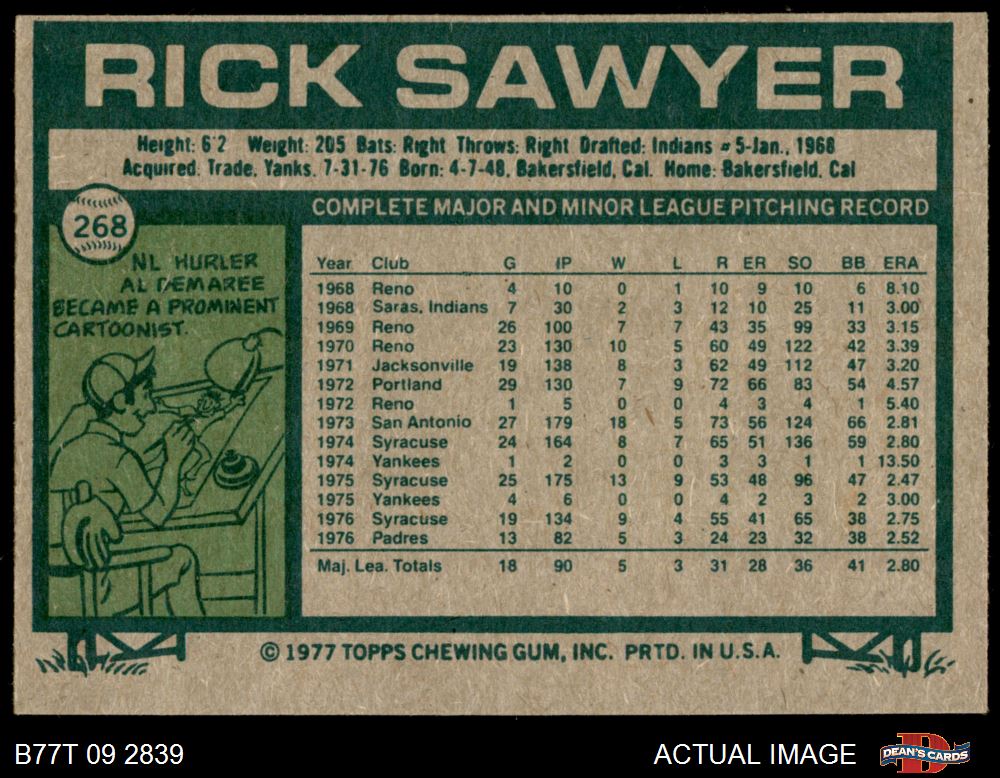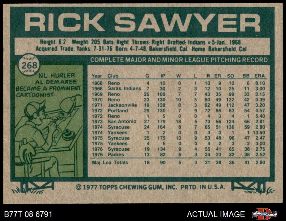 1977 Topps #268 Rick Sawyer 6 - EX/MT
