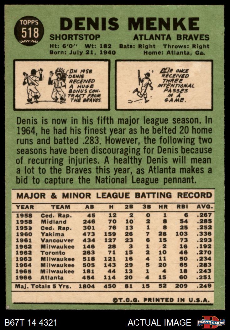 1967 Topps #518 Denis Menke 6 - EX/MT