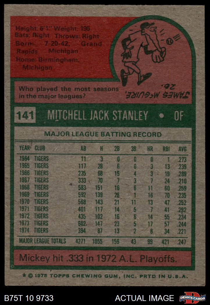 1975 Topps #141 Mickey Stanley 7.5 - NM+