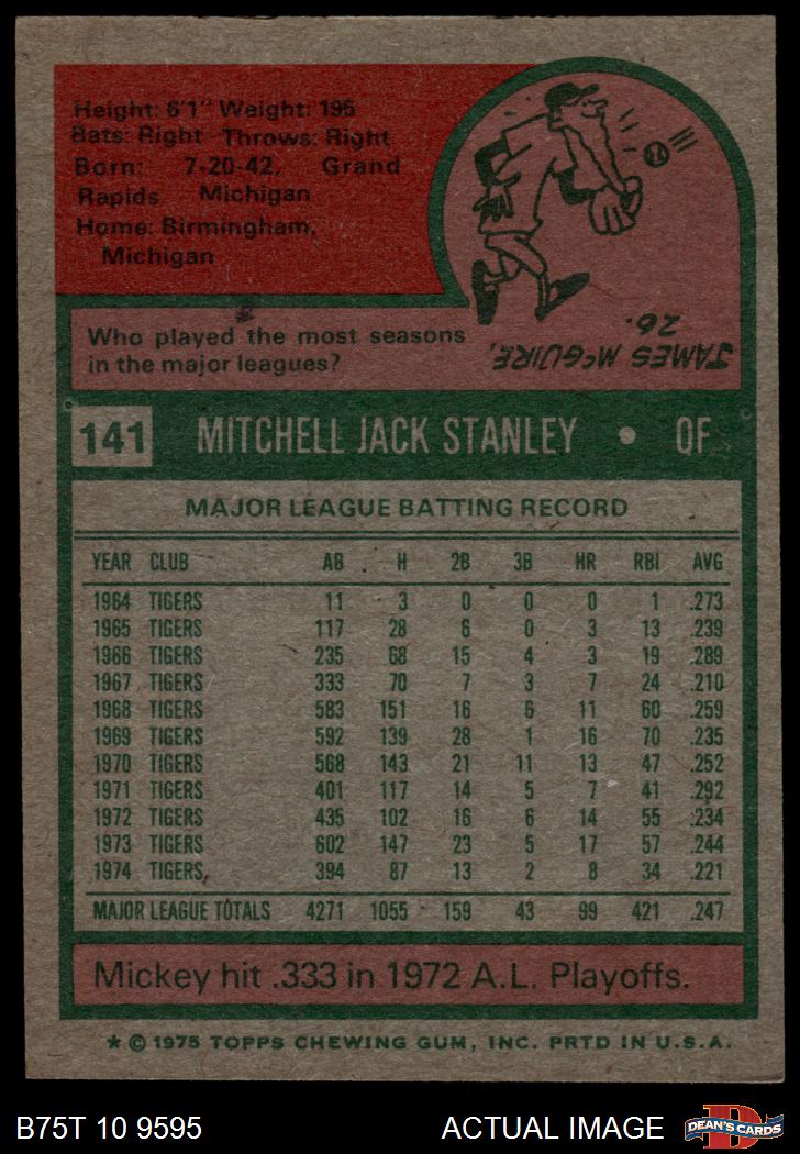 1975 Topps #141 Mickey Stanley 8 - NM/MT