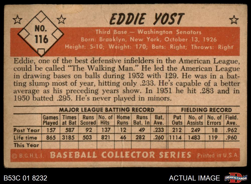 1953 Bowman #116 Eddie Yost