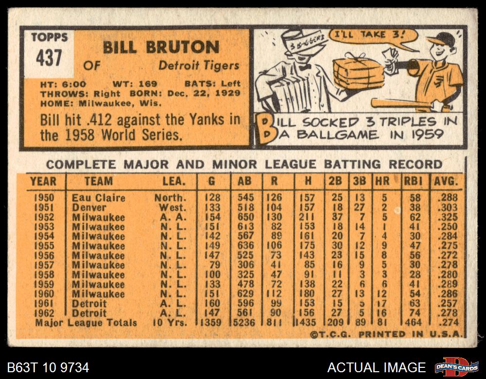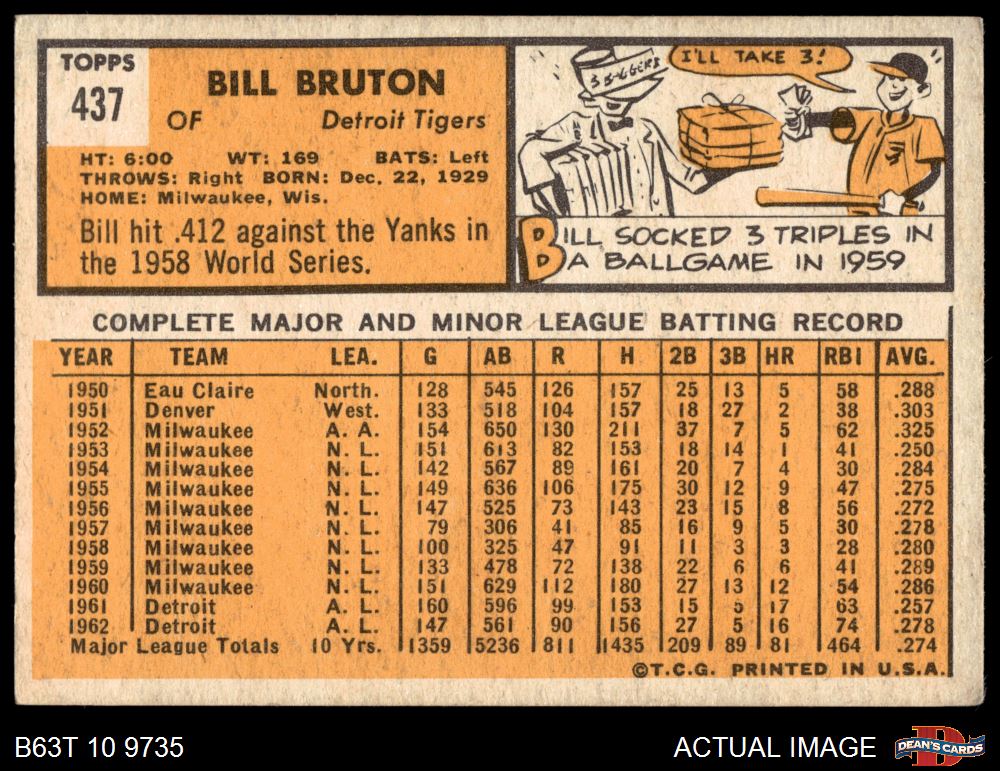 1963 Topps #437 Billy Bruton 3 - VG