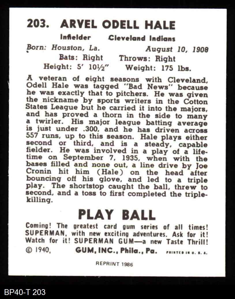 1940 Play Ball Reprint (1,465 available)1940 Play Ball Reprint Indians (66 available)