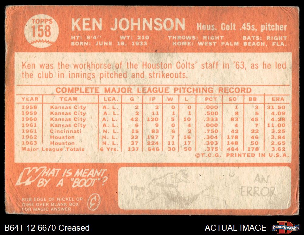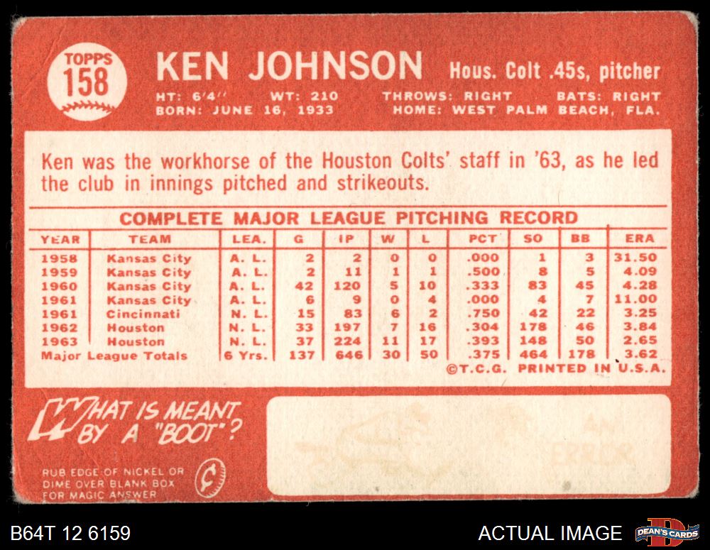 1964 Topps #158 Ken Johnson Front Thumbnail