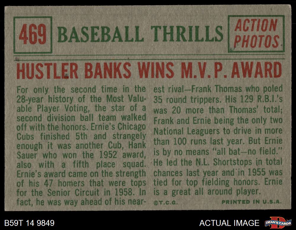 1959 Topps #469 - Ernie Banks Hustler Wins MVP Award 4.5 - VG/EX+