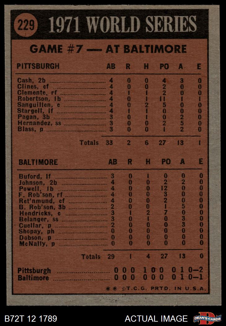 1972 Topps #229 - Steve Blass 1971 World Series - Game #7 6 - EX/MT