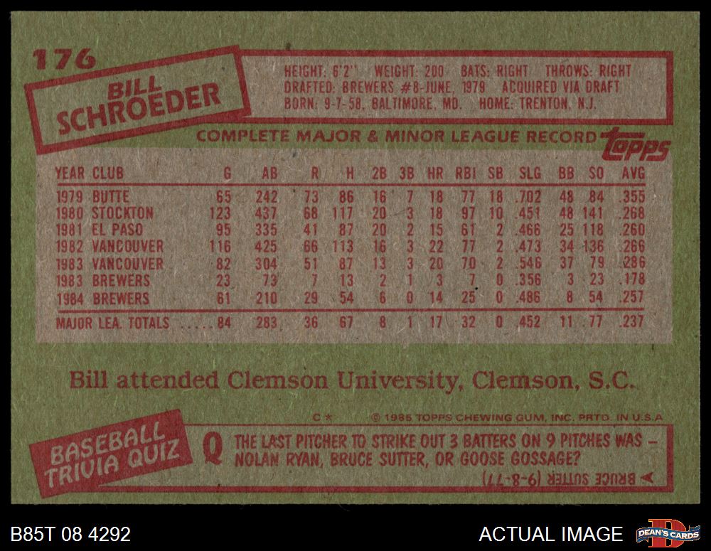 1985 Topps #176 Bill Schroeder 6 - EX/MT