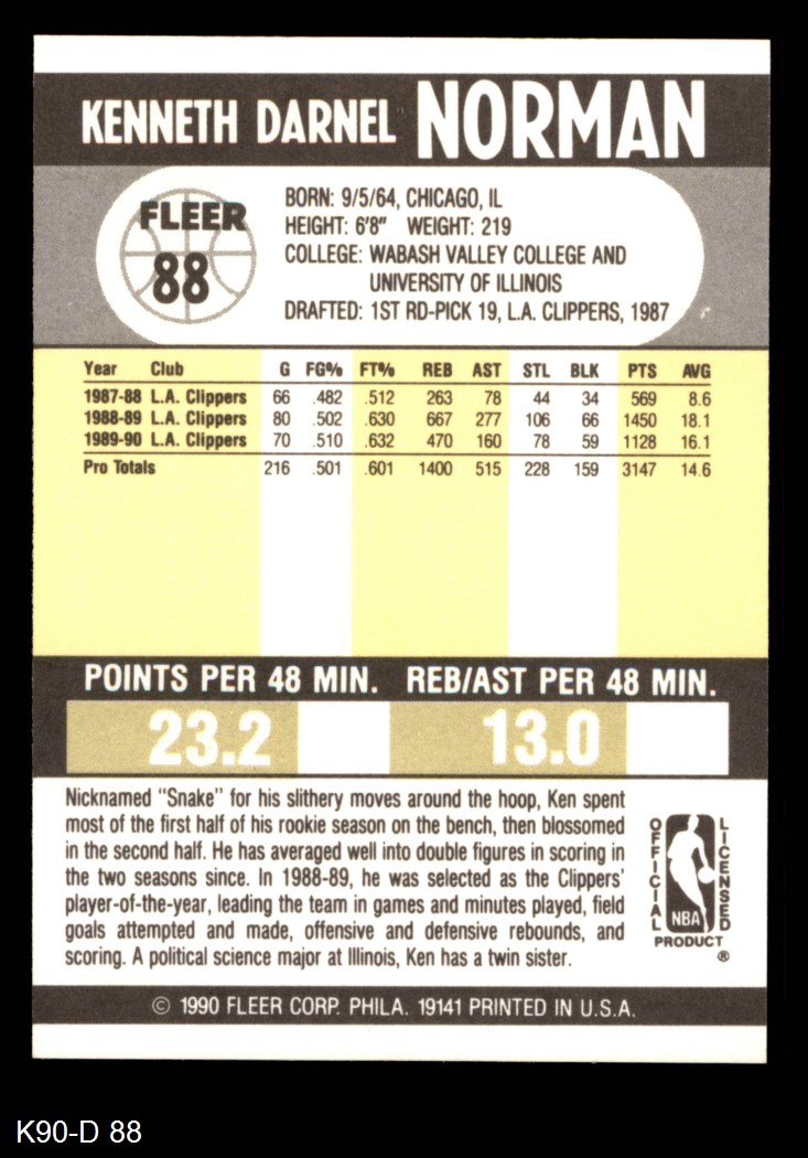 1990 Fleer #88 Ken Norman 8 - NM/MT