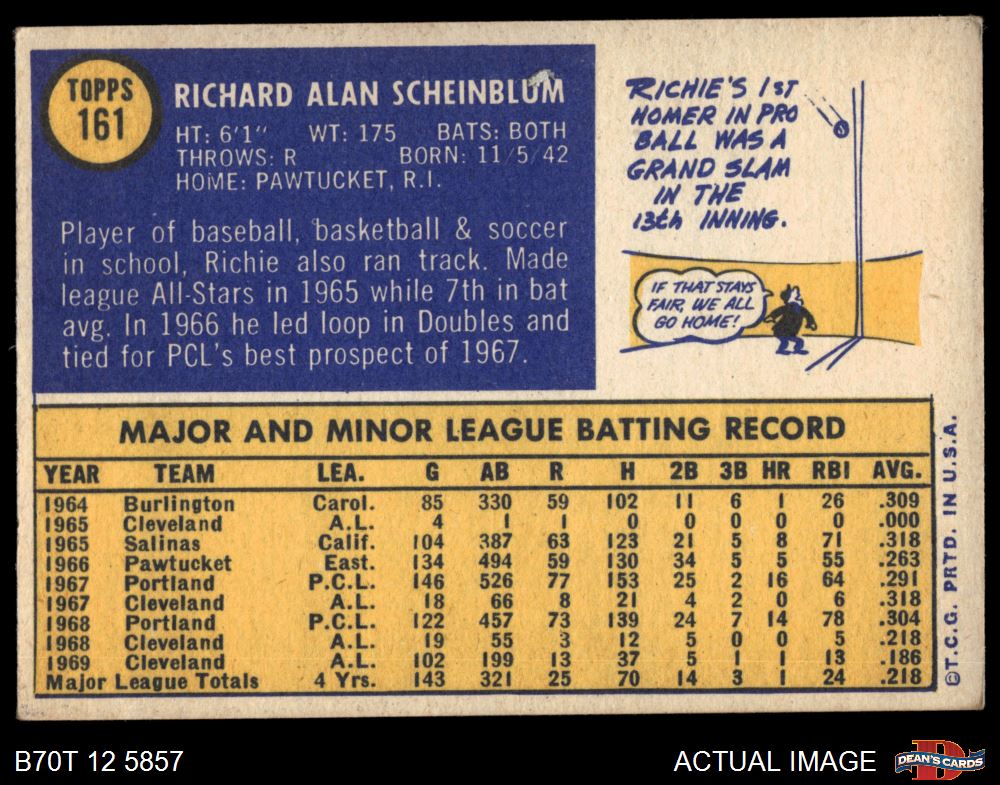 1970 Topps #161 Richie Scheinblum 5 - EX