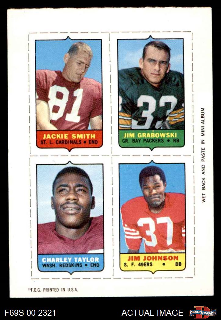1969 Topps 4-in-1 Football Jackie Smith / Jim Grabowski / Charley Taylor / Jimmy Johnson