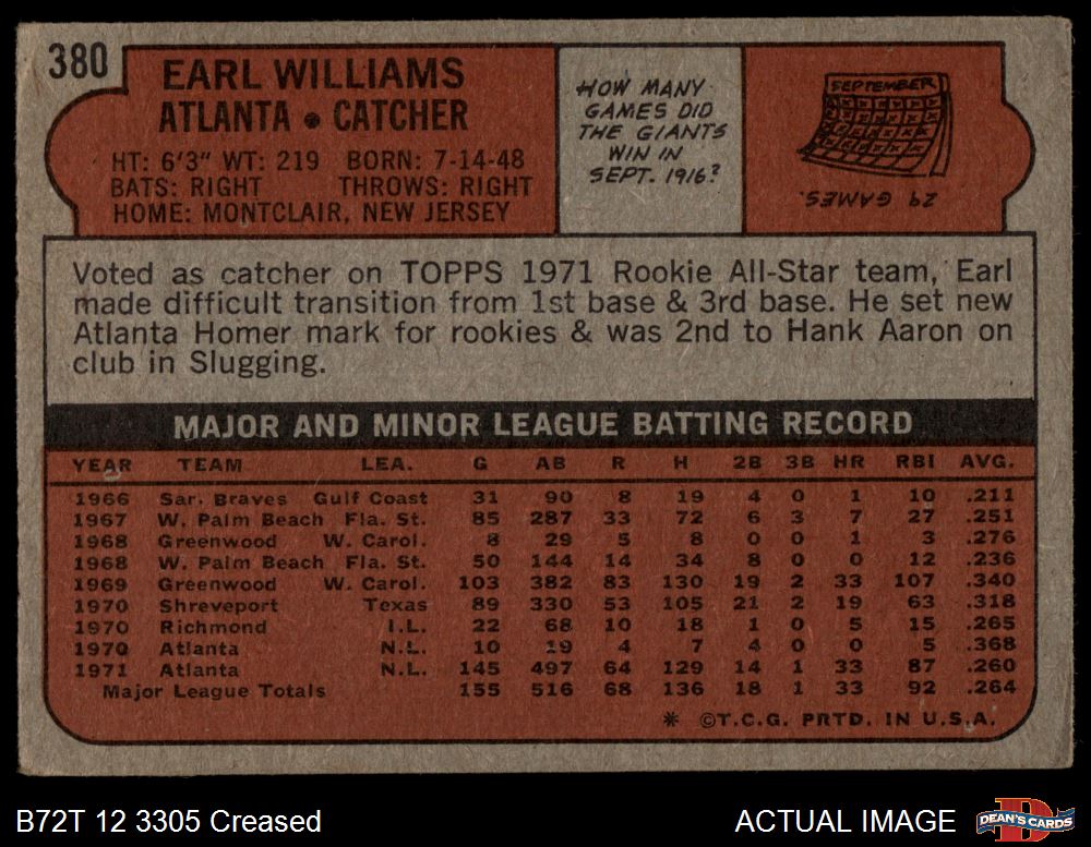 1972 Topps #380 Earl Williams 1.5 - FAIR