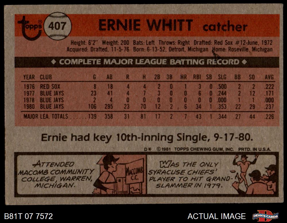 1981 Topps #407 Ernie Whitt 4 - VG/EX