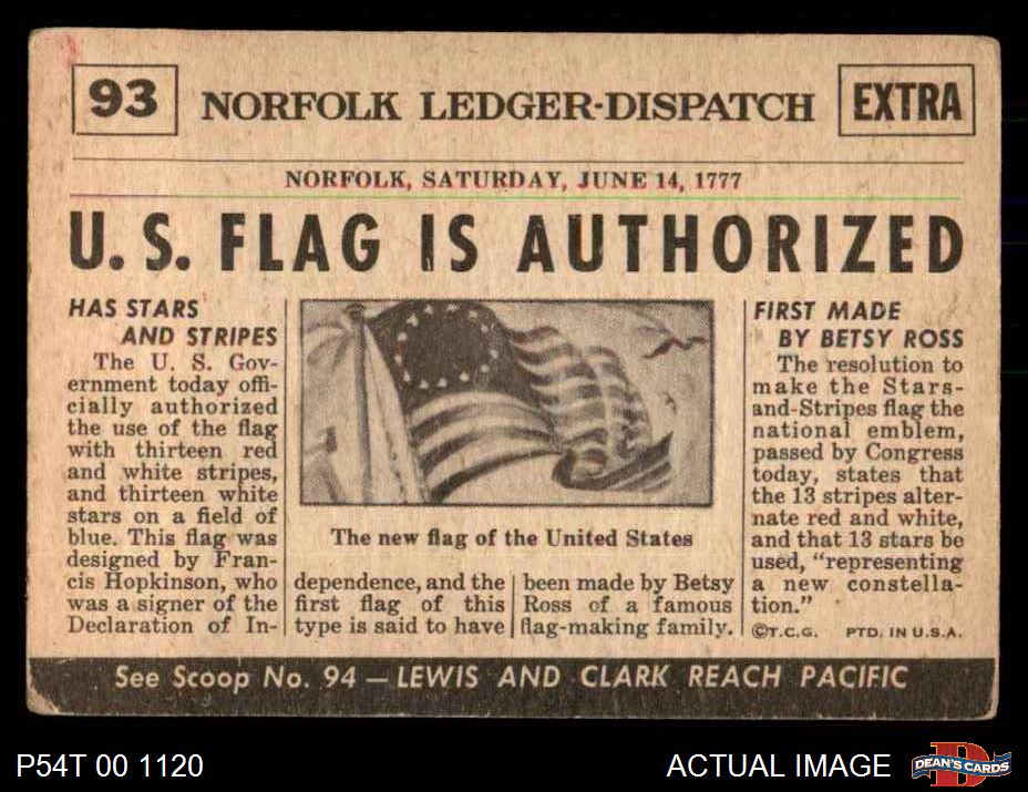 1954 Topps Scoop #93 xCOA United States Gets Flag -3 2 - GOOD