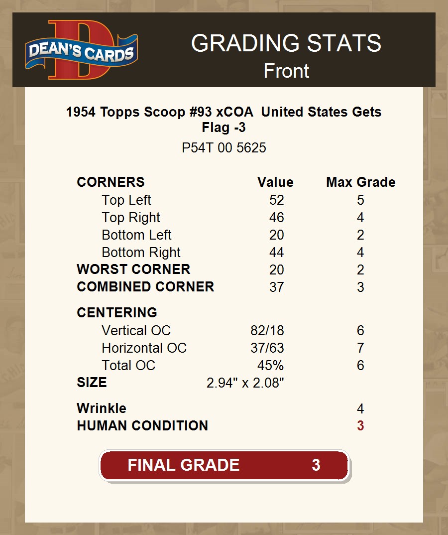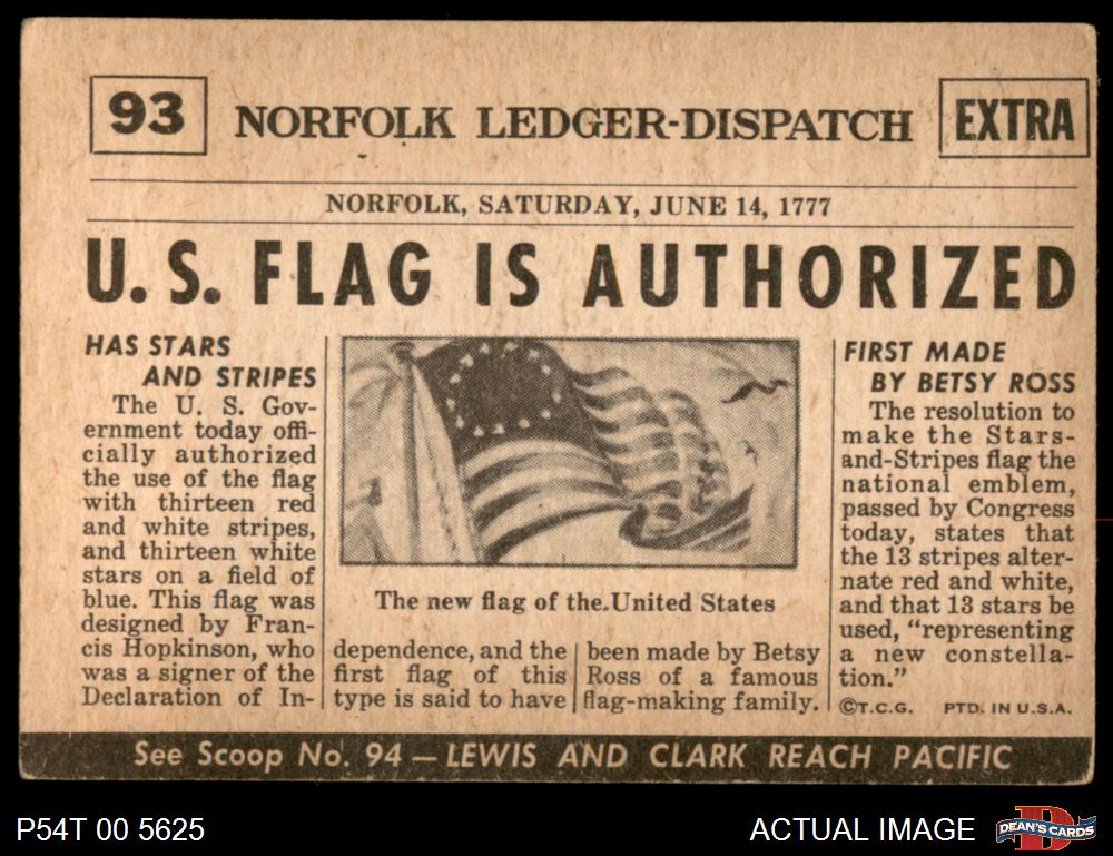 1954 Topps Scoop #93 xCOA United States Gets Flag -3 3 - VG