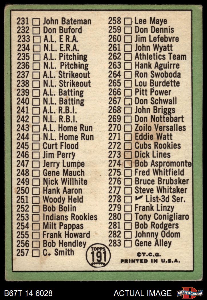 1967 Topps #191 DIC - Willie Mays Checklist 3 1.5 - FAIR
