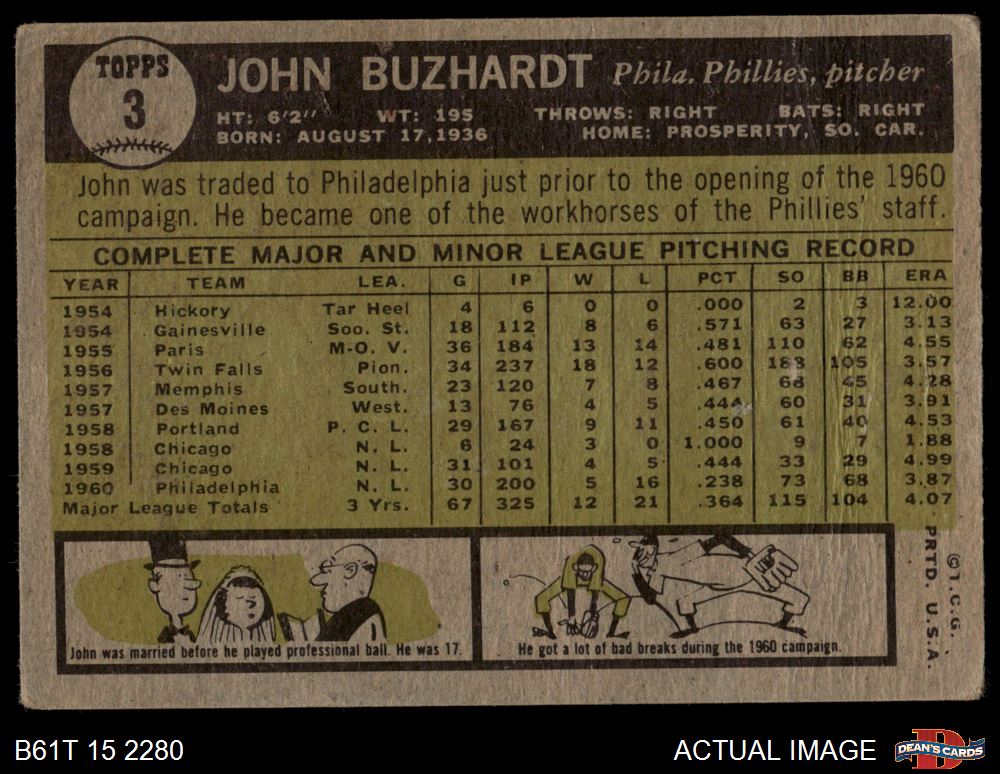 1961 Topps #3 John Buzhardt 1.5 - FAIR