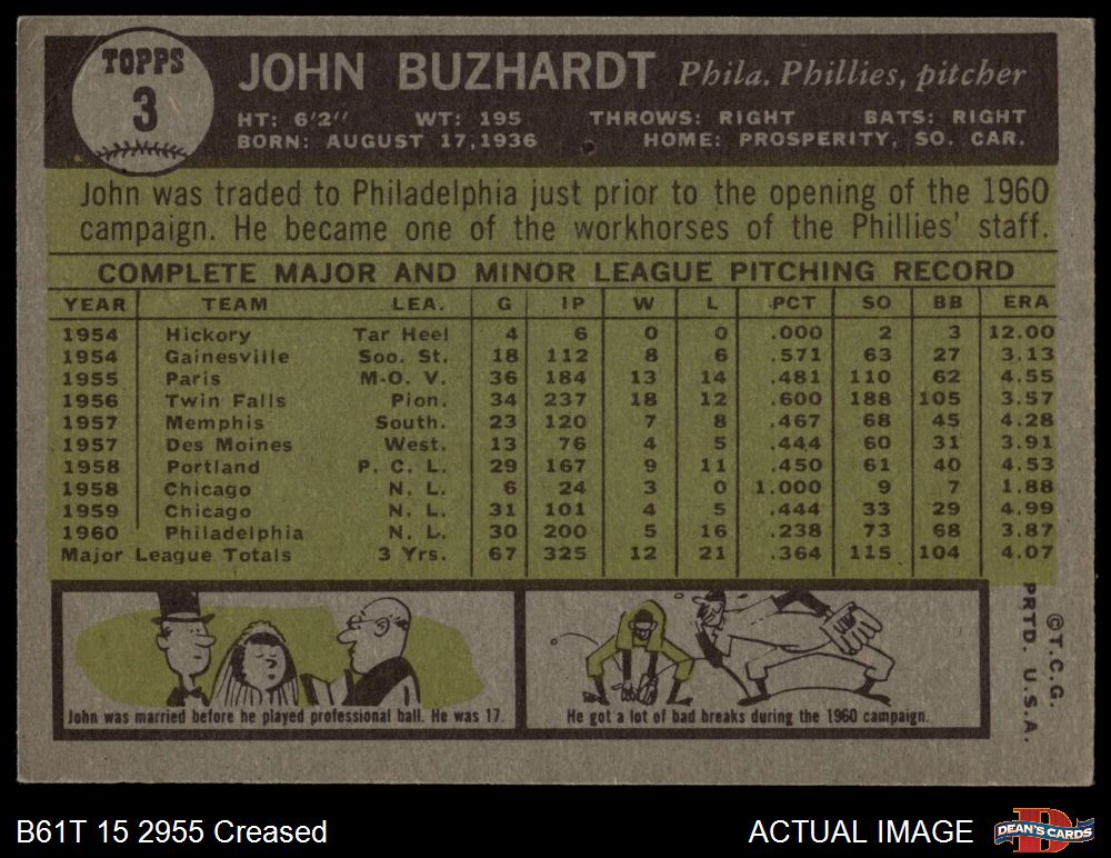 1961 Topps #3 John Buzhardt 3 - VG