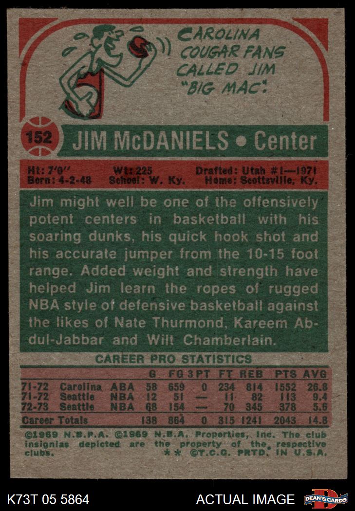 1973 Topps #152 Jim McDaniels 7 - NM