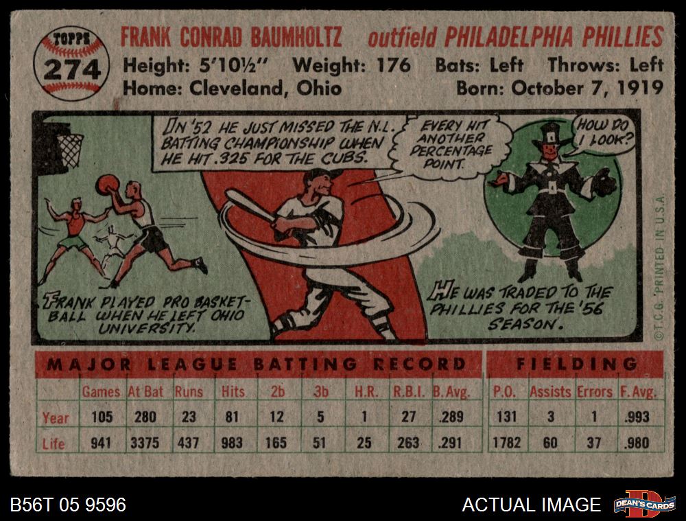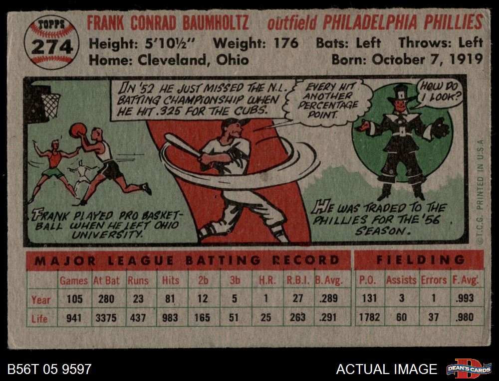 1956 Topps #274 Frank Baumholtz