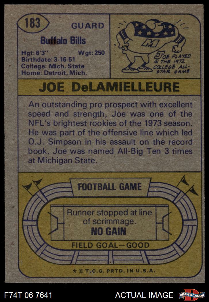 1974 Topps #183 Joe DeLamielleure 4 - VG/EX