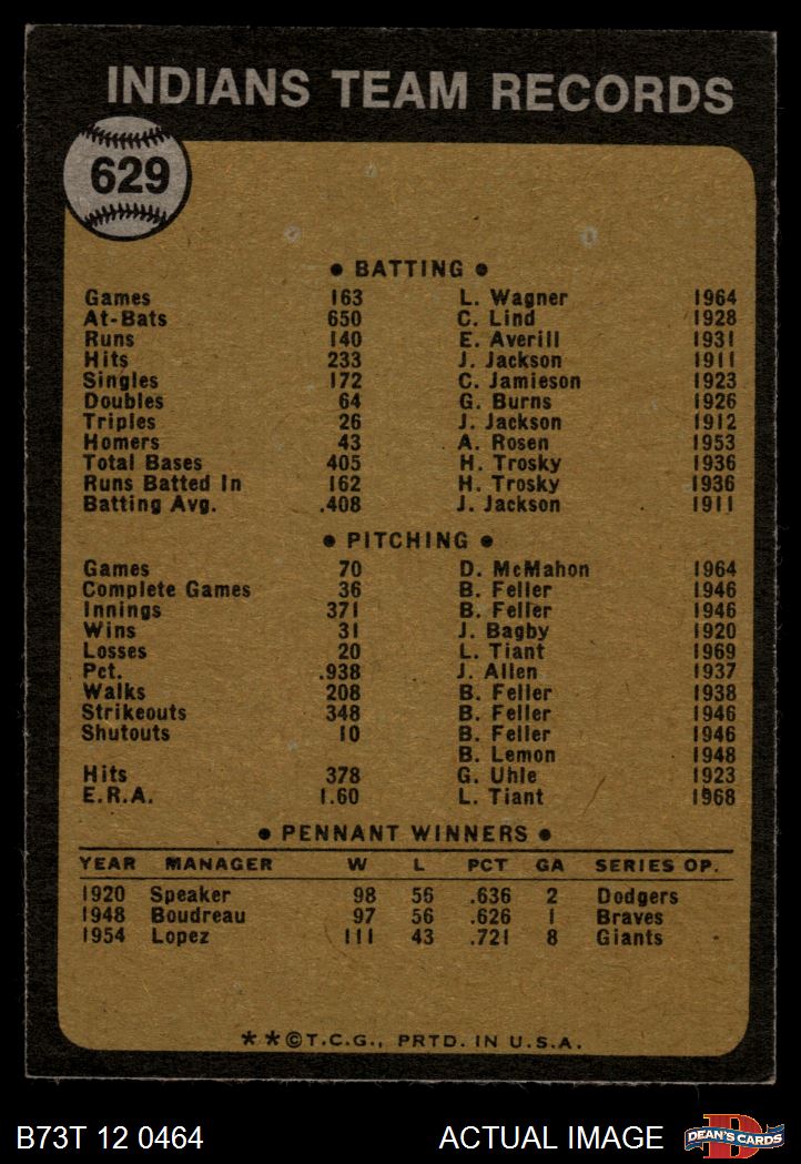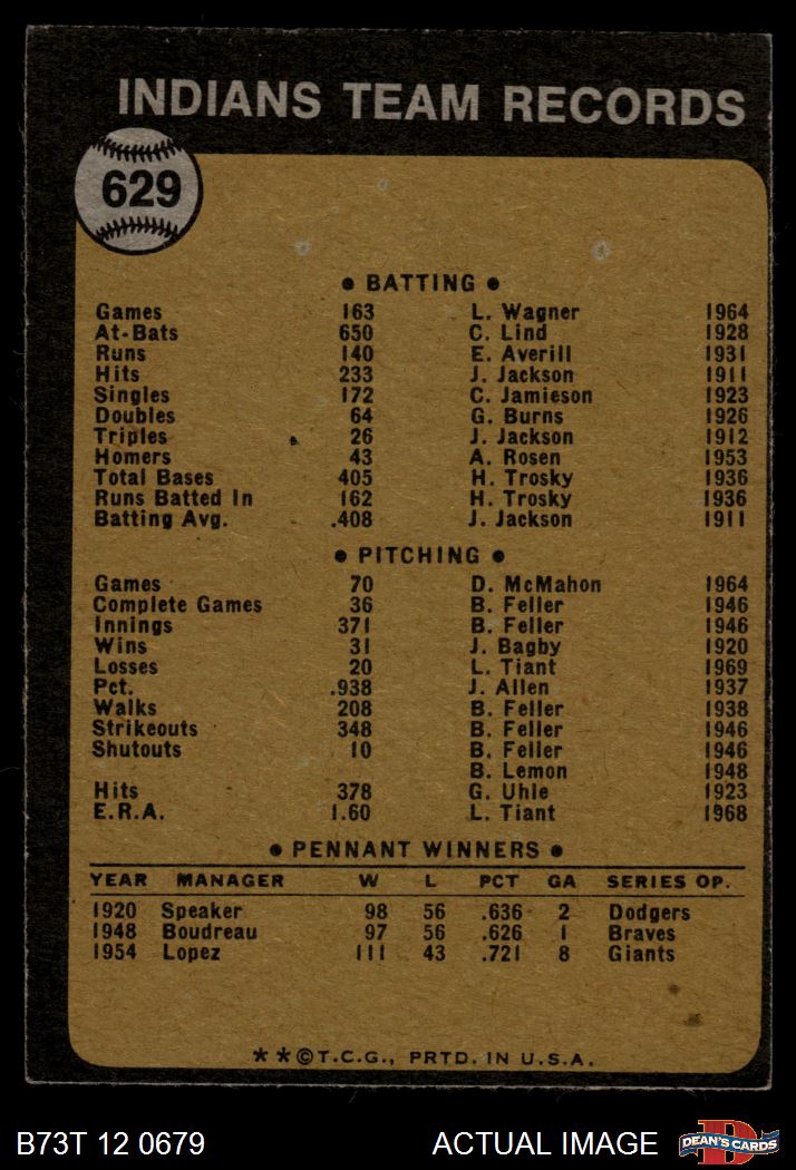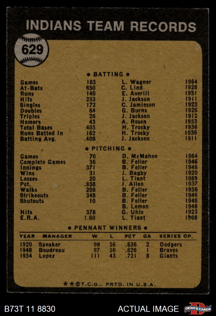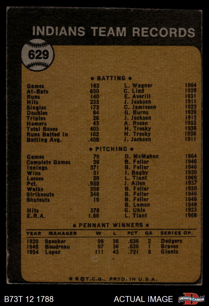 1973 Topps #629 Indians Team