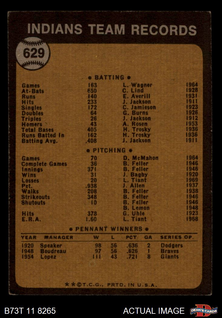 1973 Topps #629 Indians Team 3 - VG