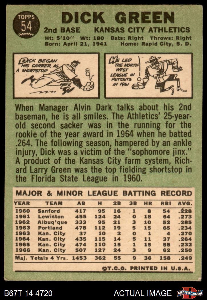 1967 Topps #54 Dick Green 3 - VG