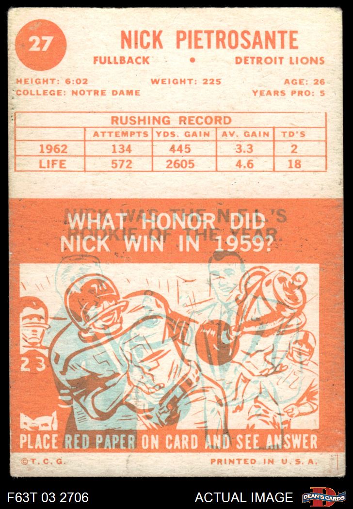 1963 Topps #27 Nick Pietrosante Front Thumbnail