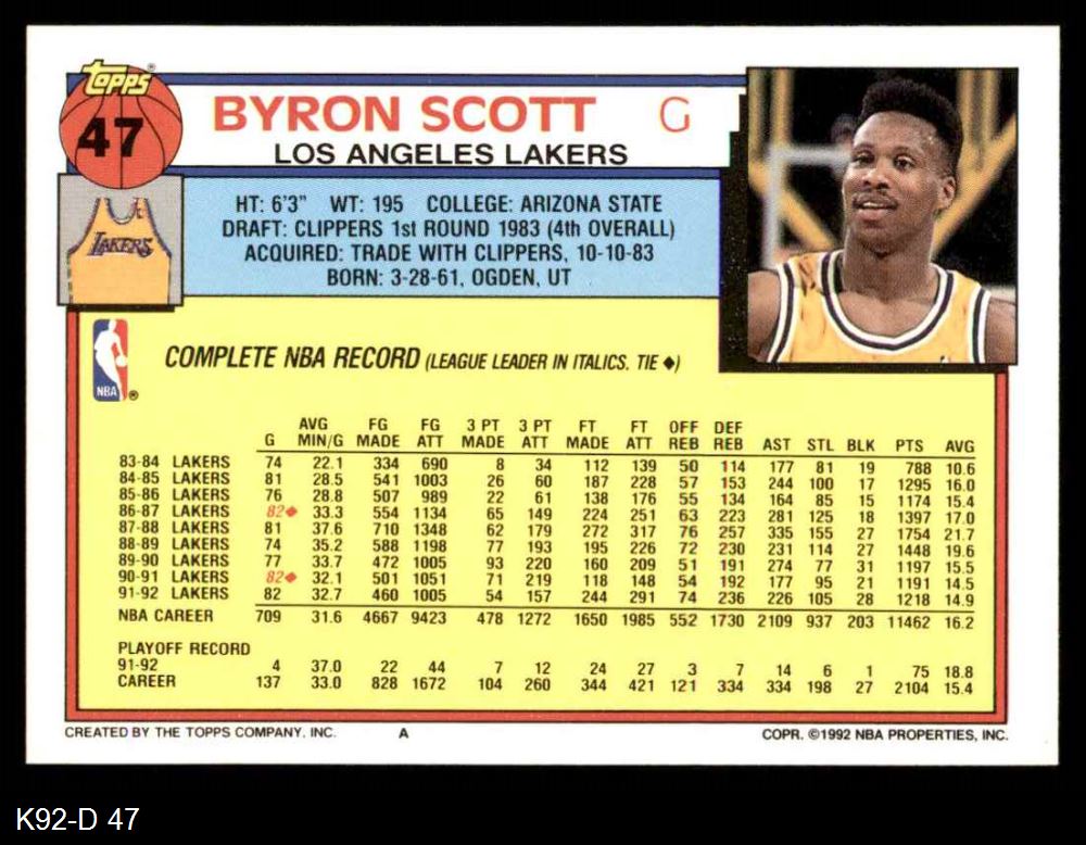 1992 Topps #47 Byron Scott