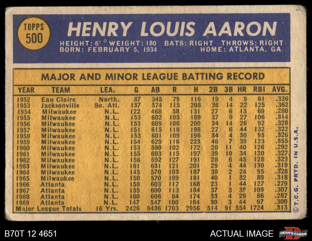 1970 Topps #500 Hank Aaron 1.5 - FAIR