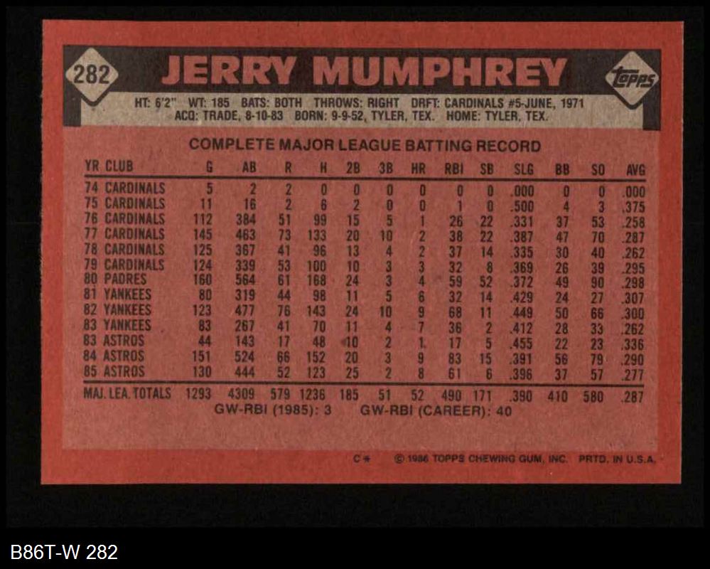 1986 Topps Baseball Cards (6,195 available)1986 Topps Astros (232 available)