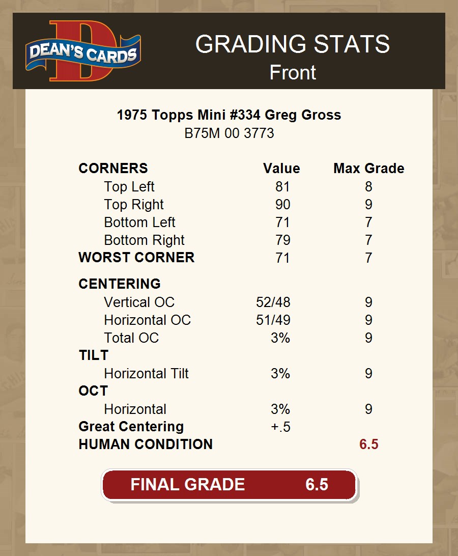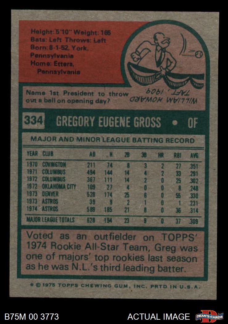 1975 Topps Mini #334 Greg Gross 6.5 - EX/MT+