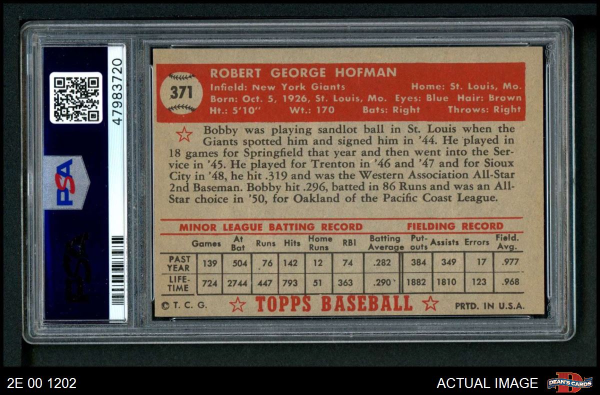 1952 Topps #371 Bobby Hofman PSA 7 - NM