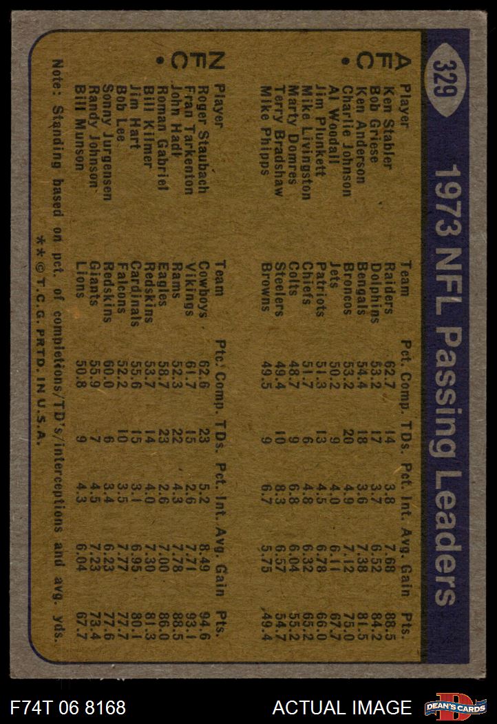 1974 Topps #329 - Roger Staubach / Ken Stabler Passing Leaders 3 - VG