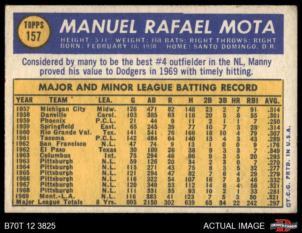 1970 Topps #157 Manny Mota 3 - VG