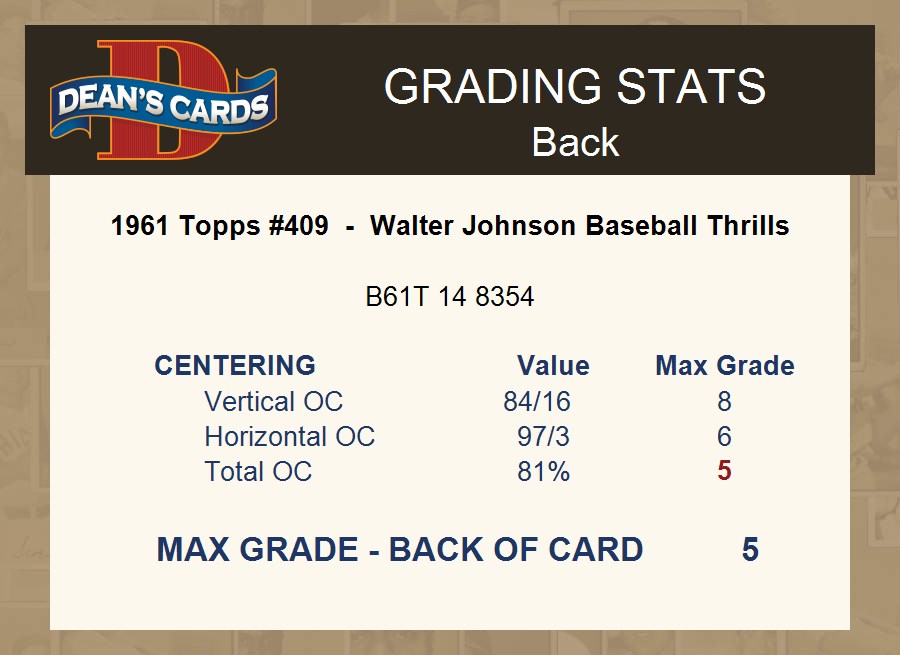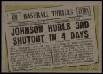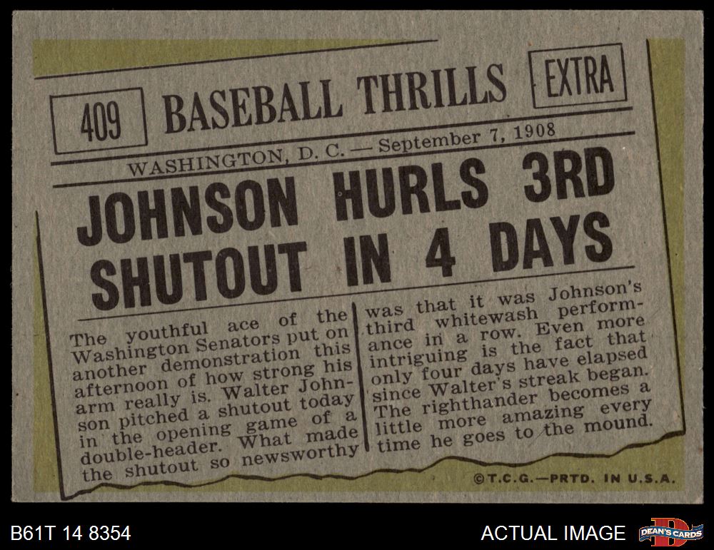 1961 Topps #409 - Walter Johnson Baseball Thrills 5 - EX