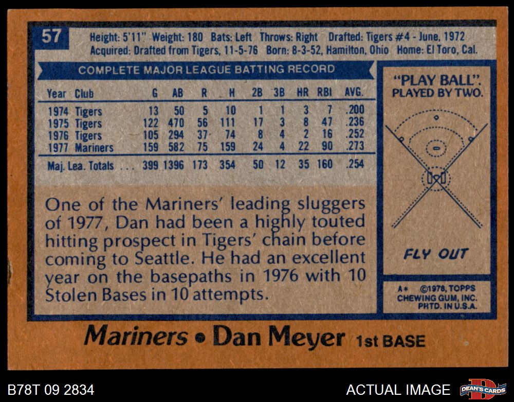 1978 Topps #57 Dan Meyer 6 - EX/MT