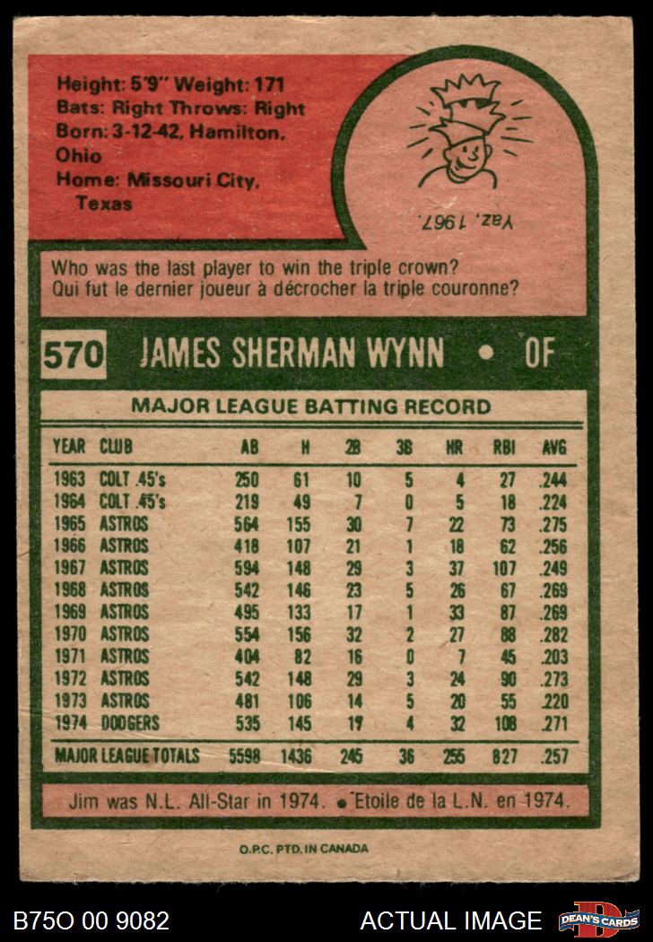 1975 O-Pee-Chee #570 Jim Wynn 4.5 - VG/EX+