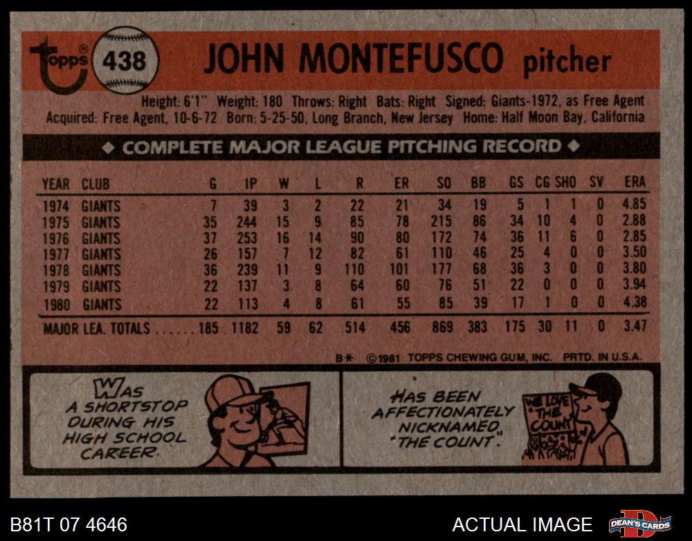 1981 Topps #438 John Montefusco 6 - EX/MT