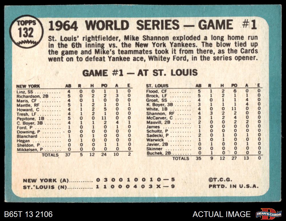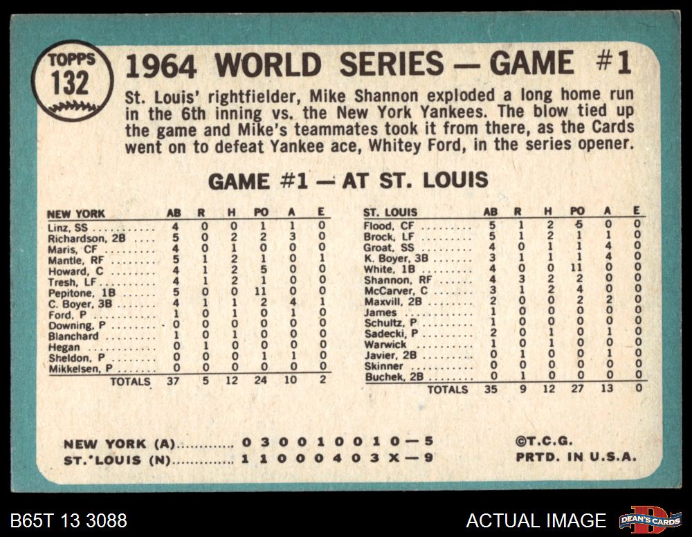 1965 Topps #132 1964 World Series - Game #1 - Cards Take Opener
