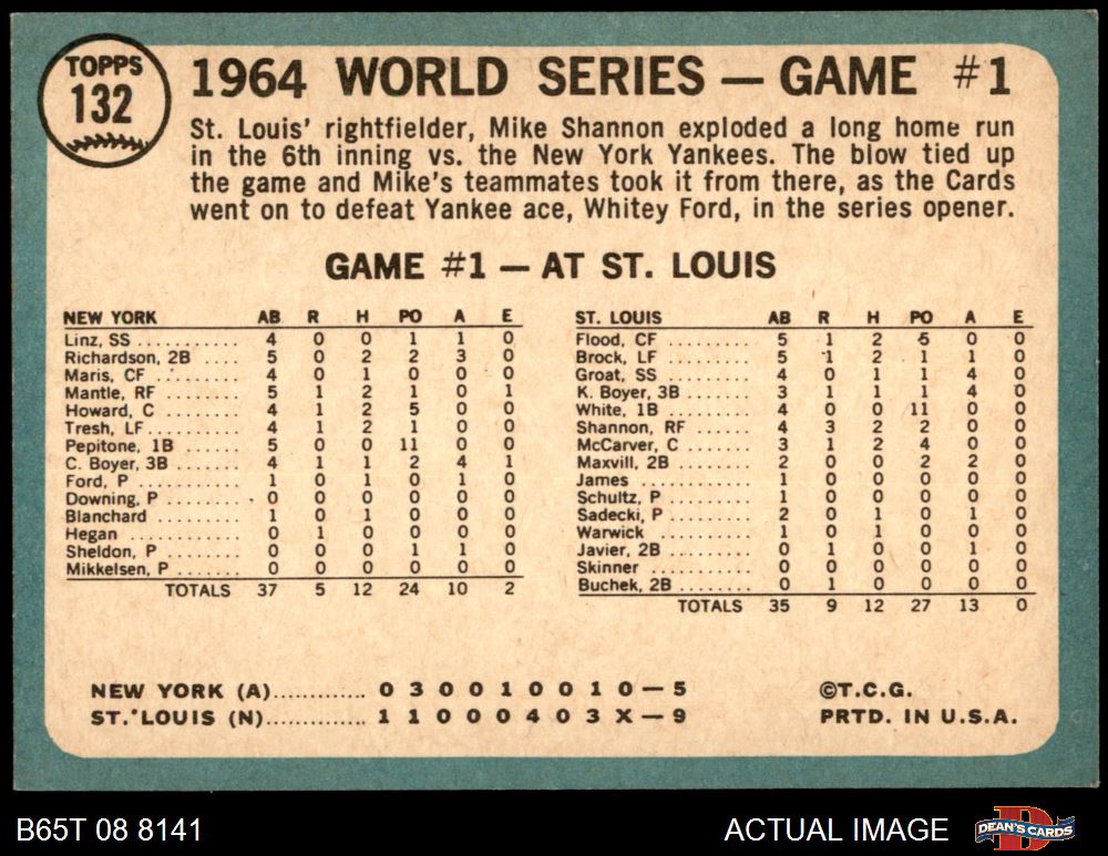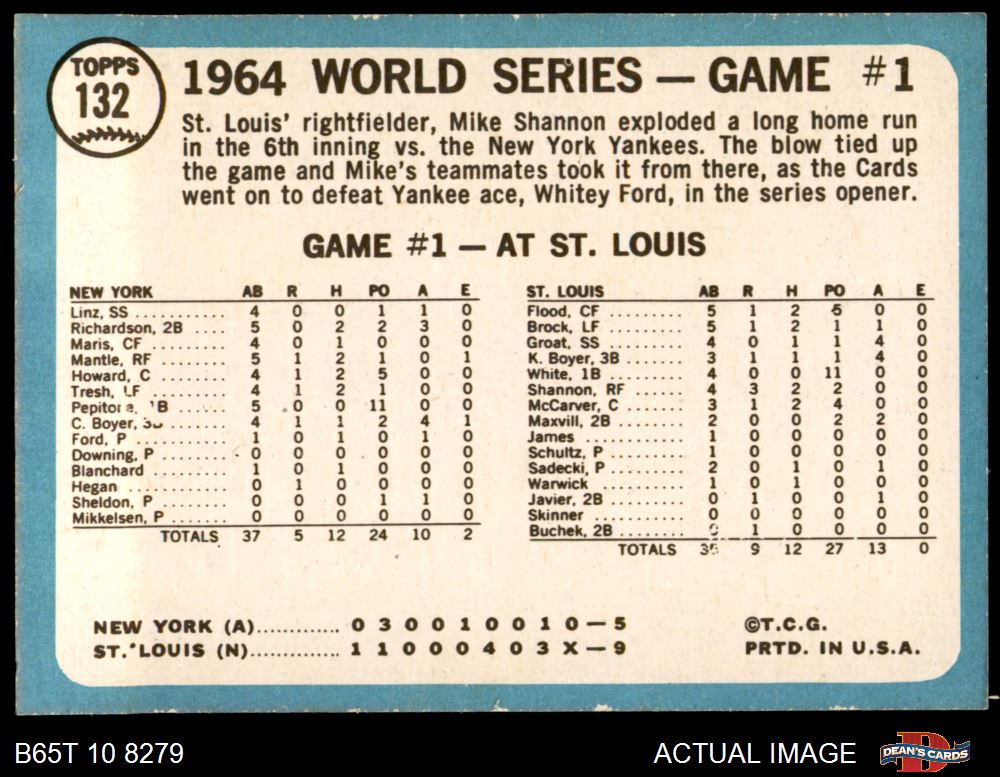 1965 Topps #132 - Mike Shannon / Whitey Ford / Elston Howard 1964 World Series - Game #1 - Cards Take Opener 7.5 - NM+