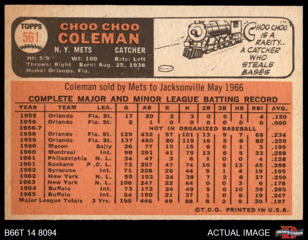 1966 Topps #561 Choo Choo Coleman