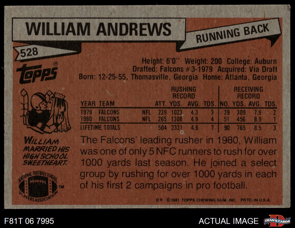 1981 Topps #528 William Andrews 3.5 - VG+