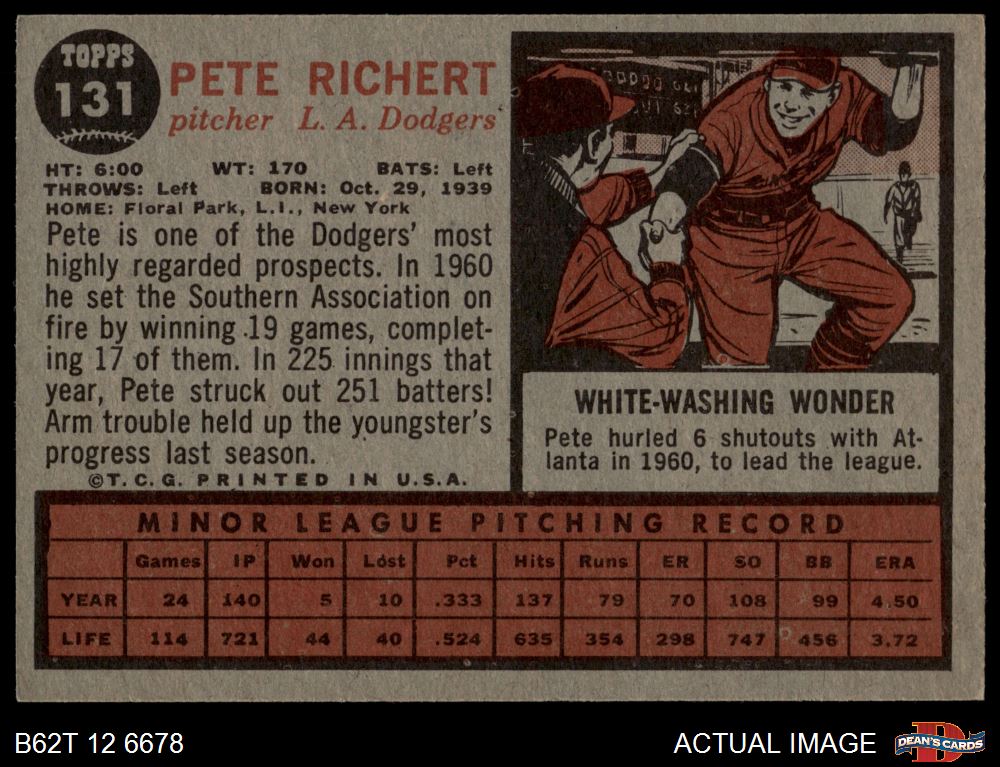 1962 Topps #131 NRM Pete Richert