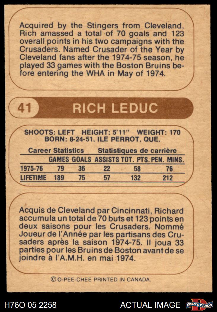 1976 O-Pee-Chee WHA #41 Rich Leduc 6 - EX/MT