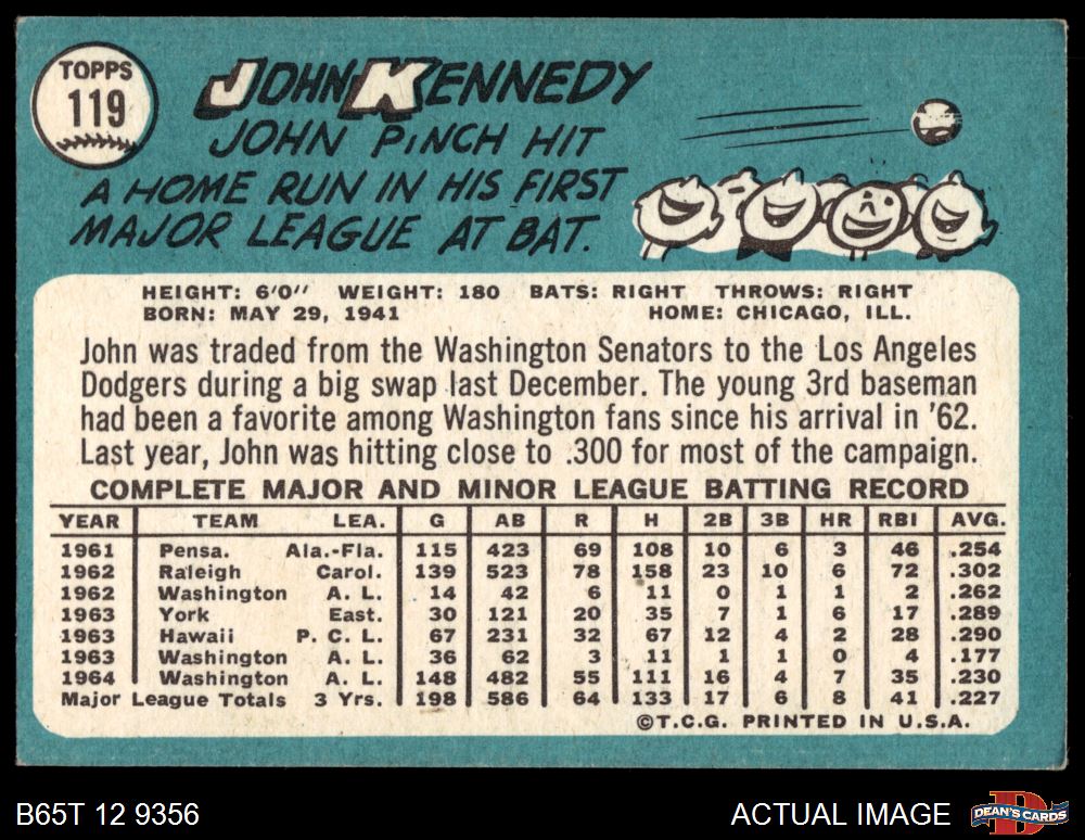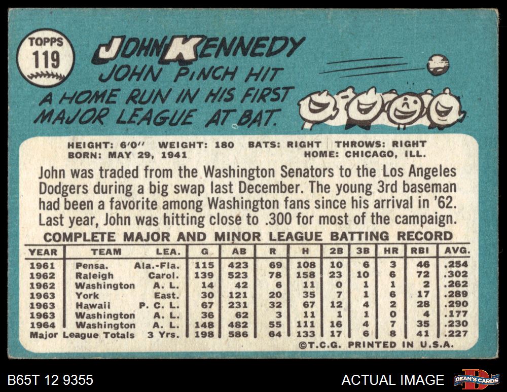 1965 Topps #119 John Kennedy 3 - VG