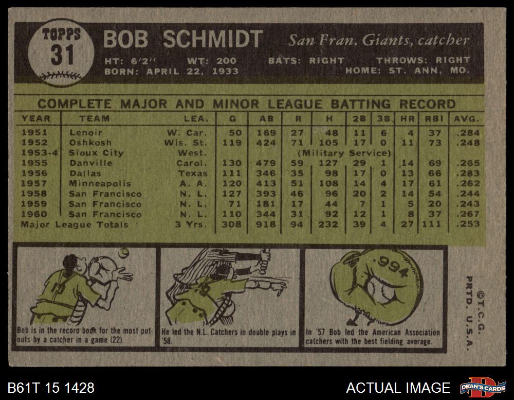 1961 Topps #31 Bob Schmidt 4 - VG/EX