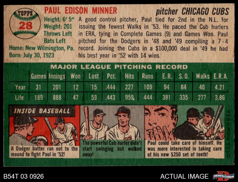 1954 Topps #28 WHT Paul Minner 4 - VG/EX