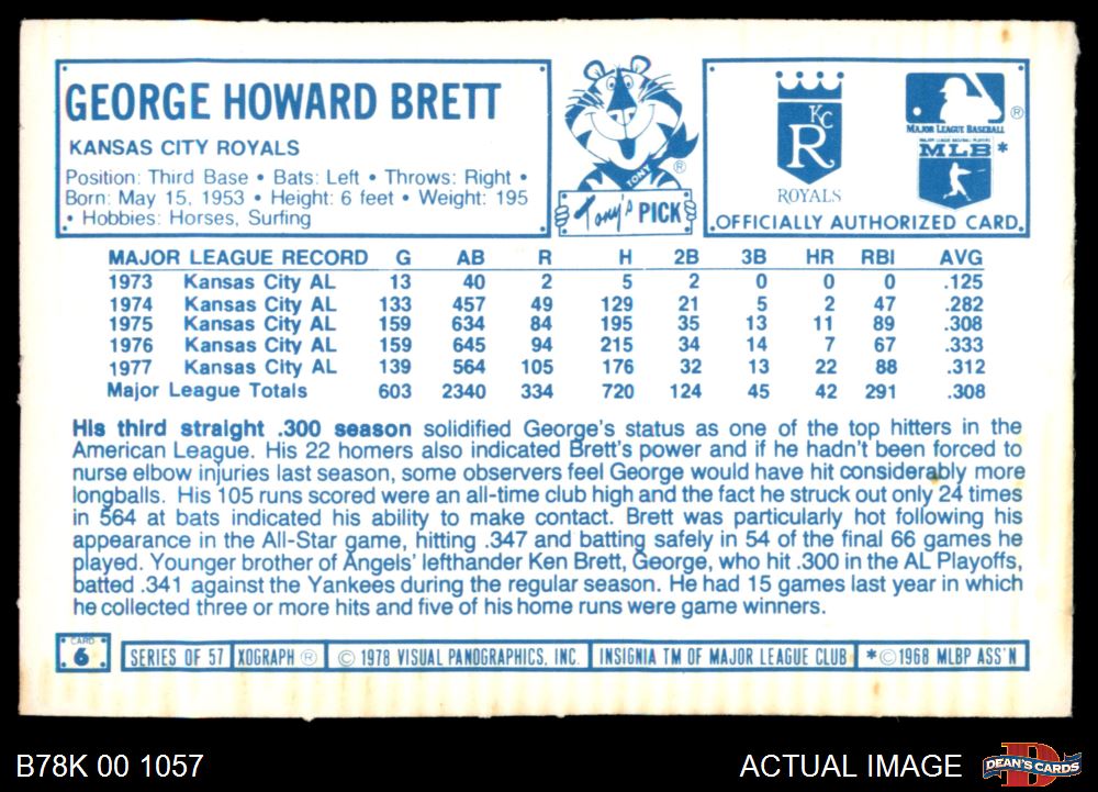 1978 Kellogg's #6 George Brett 4 - VG/EX